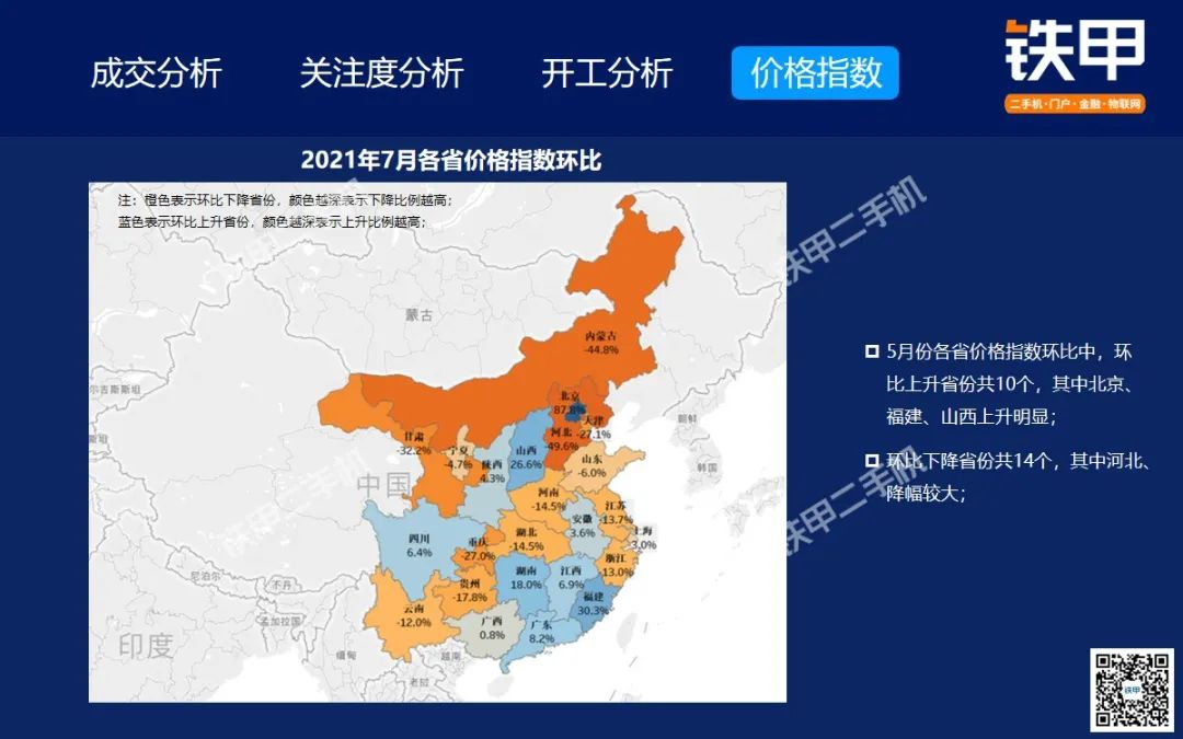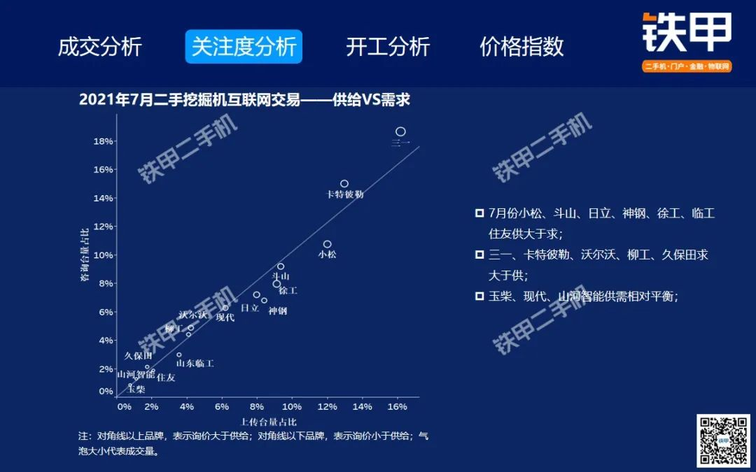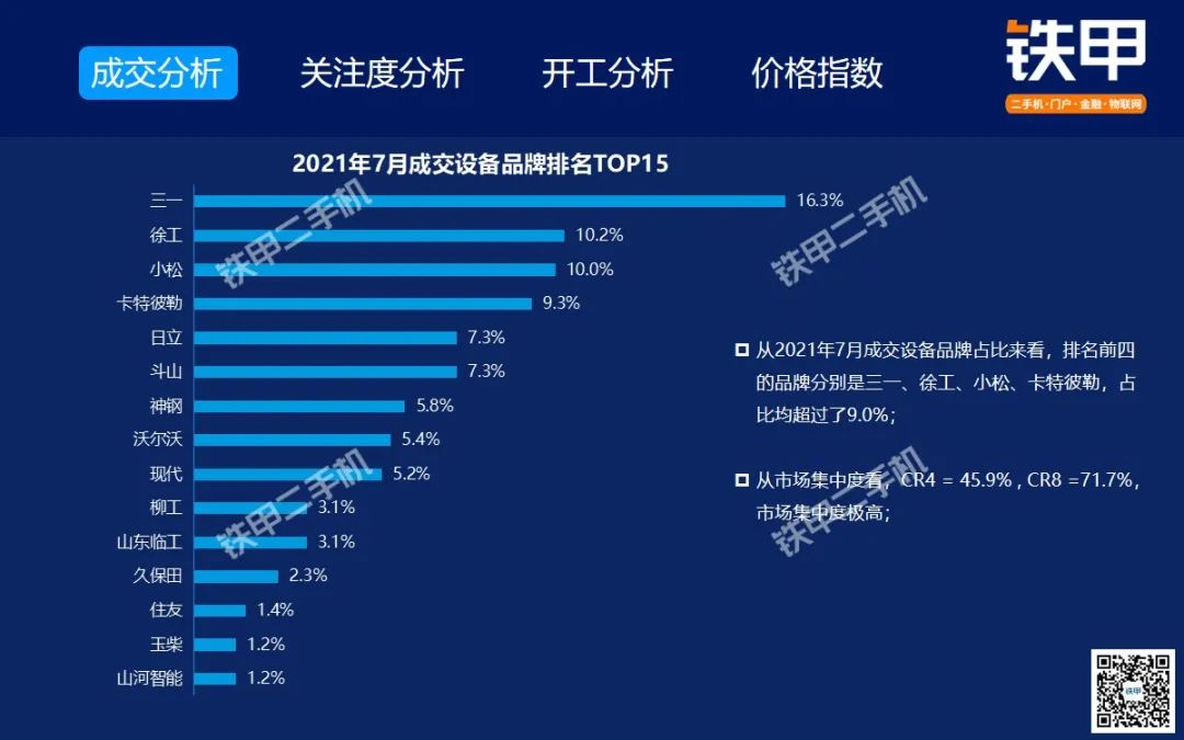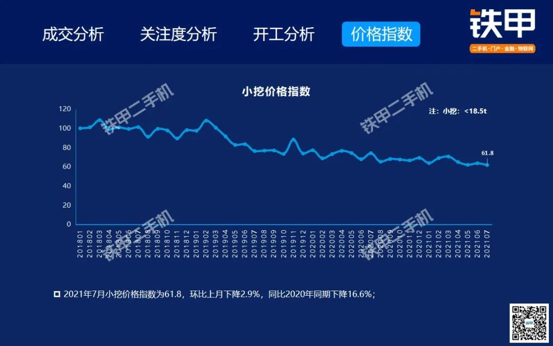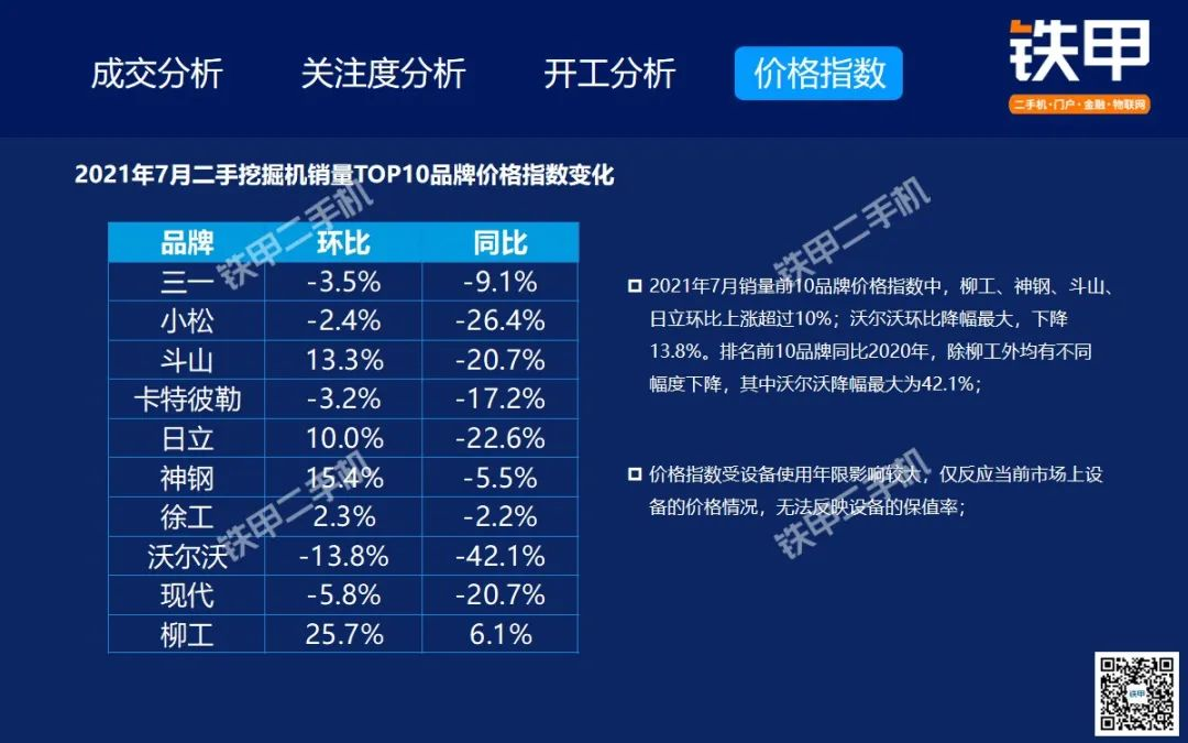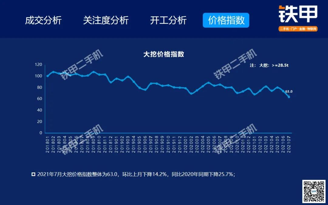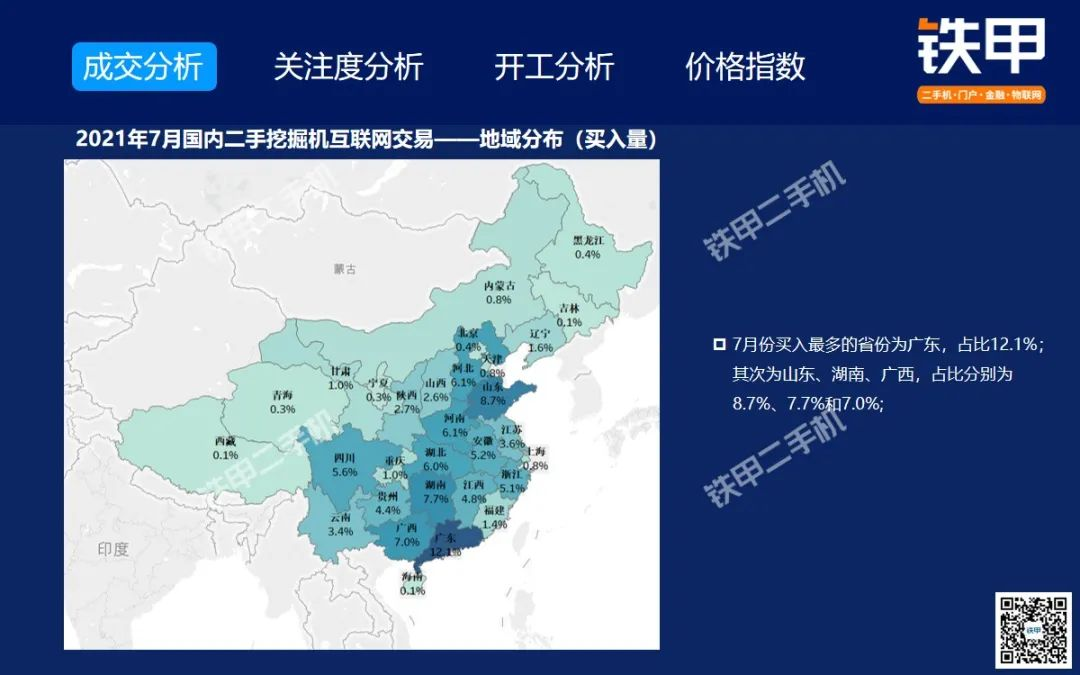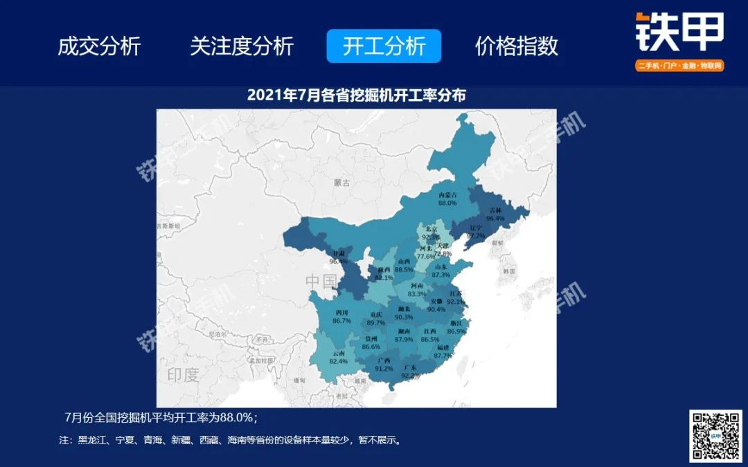 2021年7月全国挖机平均开工率88%,铁甲二手挖掘机互联网交易报告新鲜出炉!