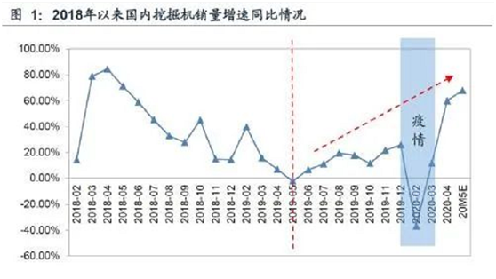 挖掘机销量爆了!5月猛增68%︱6月增速有望超50%根据中国工程机械工业协会统计数据,2020年5月份,各企业共计销售各类挖掘机械产品31744台,同比增长68%,远超行业预期(增长50%)。其中,国内市场销量29521台,同比增长76.32%,